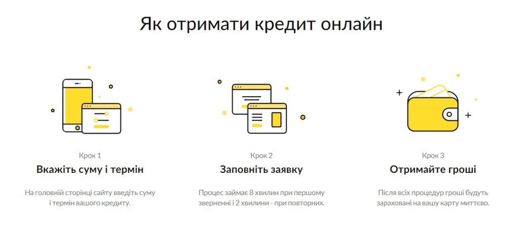 Після того, як ви прийняли умови кредитування, гроші будуть переведені на ваш банківський рахунок протягом декількох робочих днів.
